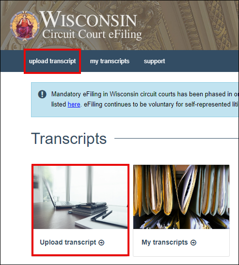 Circuit Court eFiling Filing and sharing court reporter transcripts