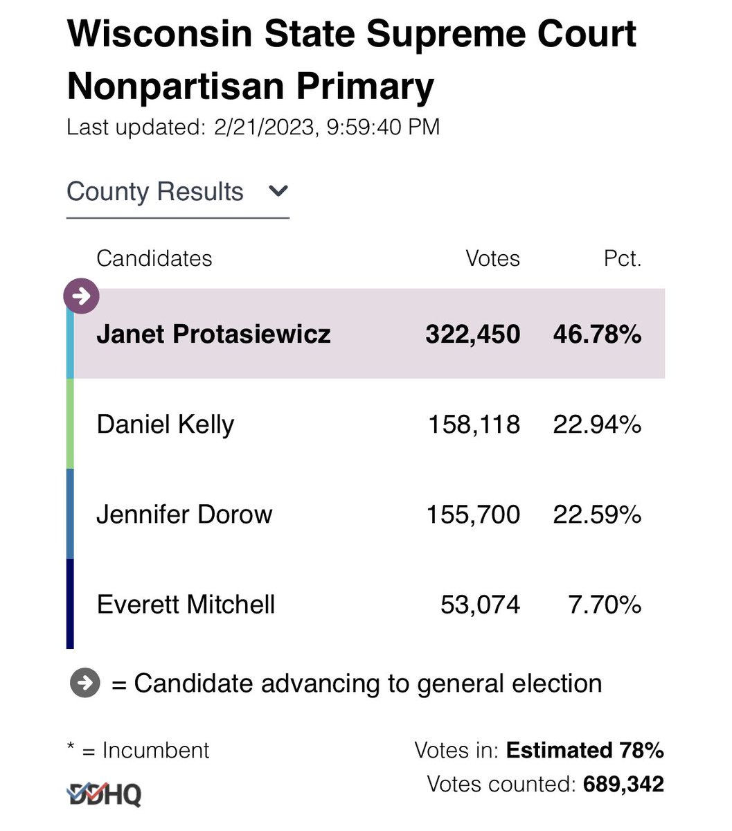 Protasiewicz Kelly advance in 2023 Wisconsin Supreme Court primary