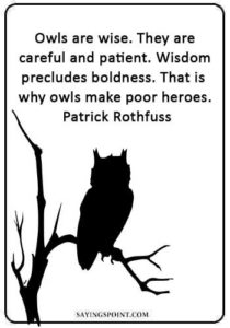 Patrick Rothfuss Quote: Owls are wise They are careful and patient