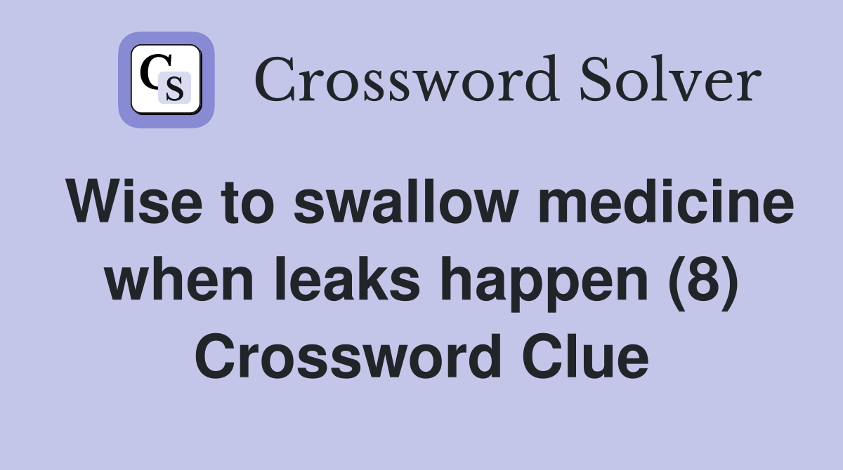 Wise to swallow medicine when leaks happen (8) Crossword Clue Answers