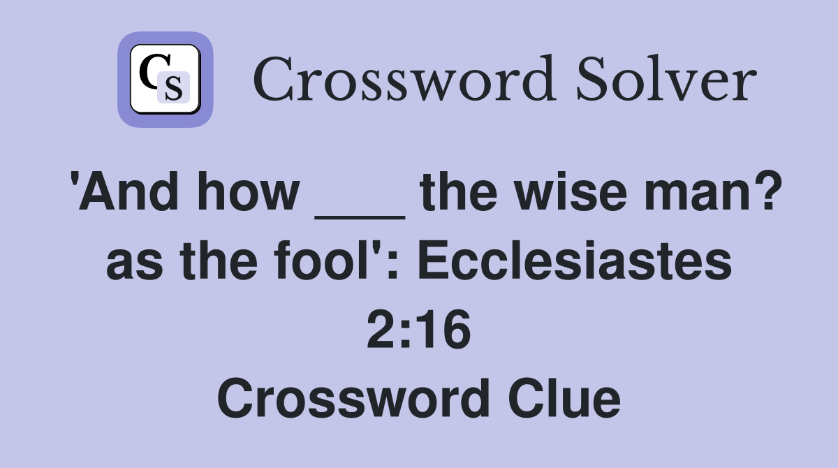 And how the wise man? as the fool : Ecclesiastes 2:16 Crossword