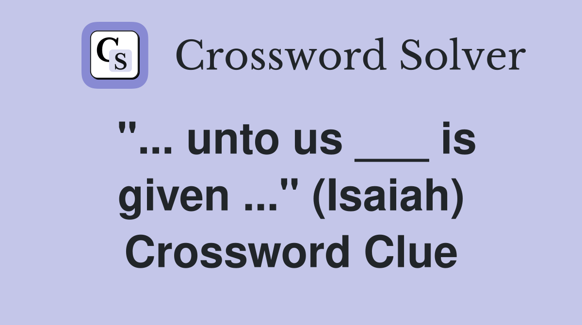 unto us is given quot (Isaiah) Crossword Clue Answers Crossword