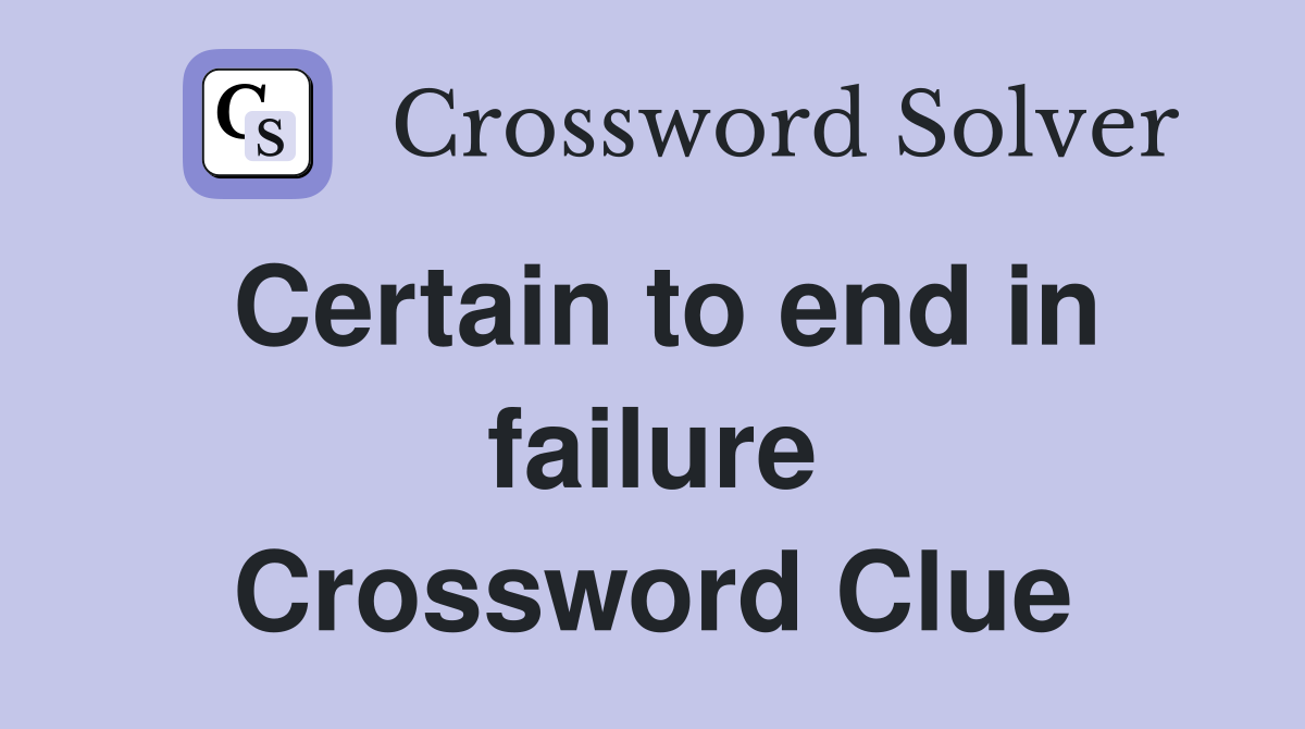Certain to end in failure Crossword Clue Answers Crossword Solver