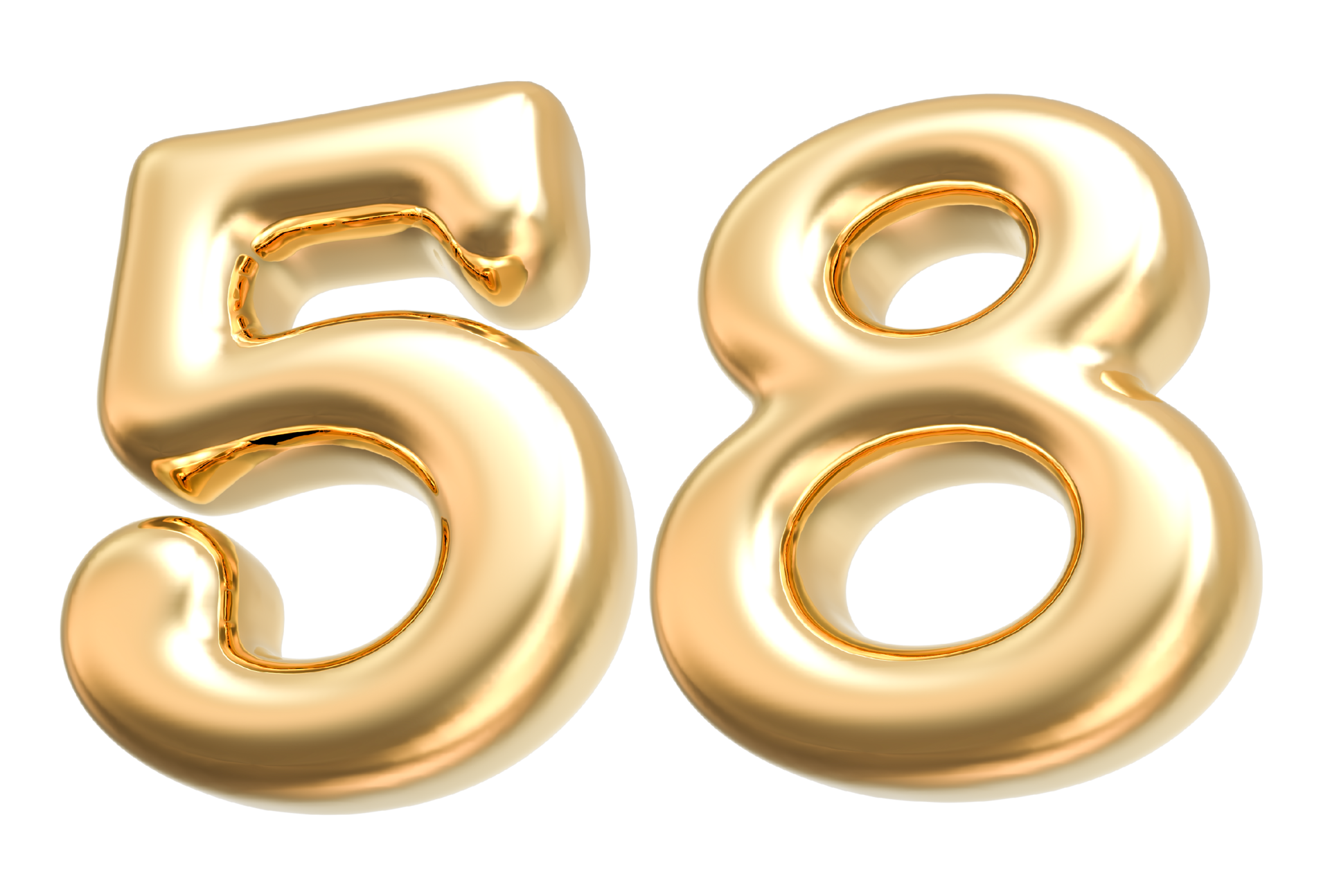 Gold number 58 Fifty eight shiny 3d number made of gold 3d