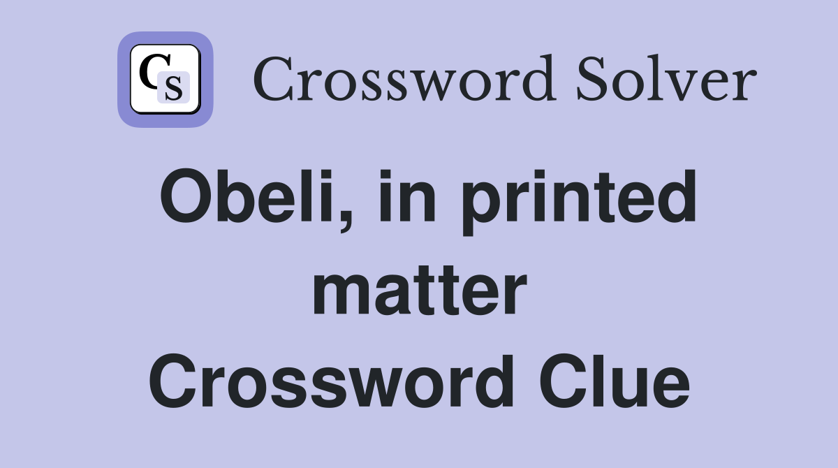 Obeli in printed matter Crossword Clue Answers Crossword Solver