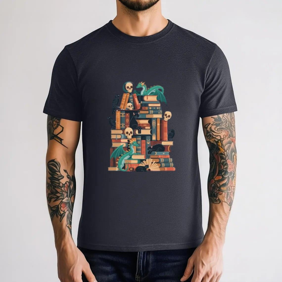 Fantasy Library M3298 Book Lover Dragon Art Unisex T shirt up to size