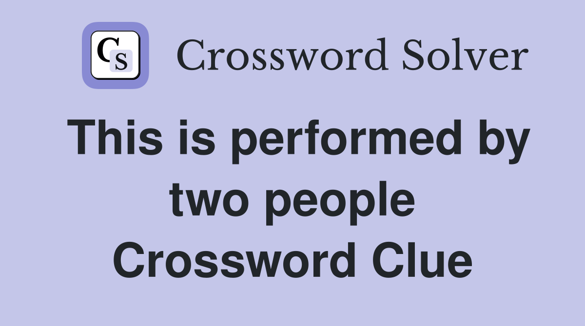 This is performed by two people Crossword Clue Answers Crossword Solver