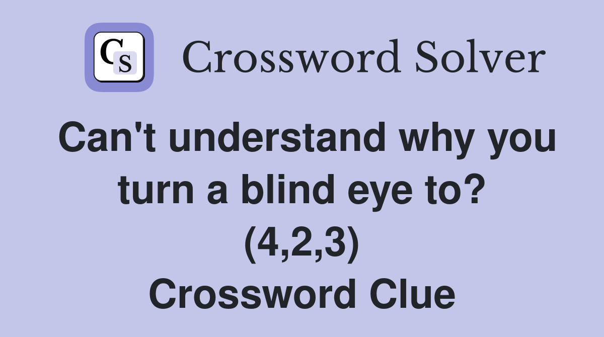 Can #39 t understand why you turn a blind eye to? (4 2 3) Crossword Clue