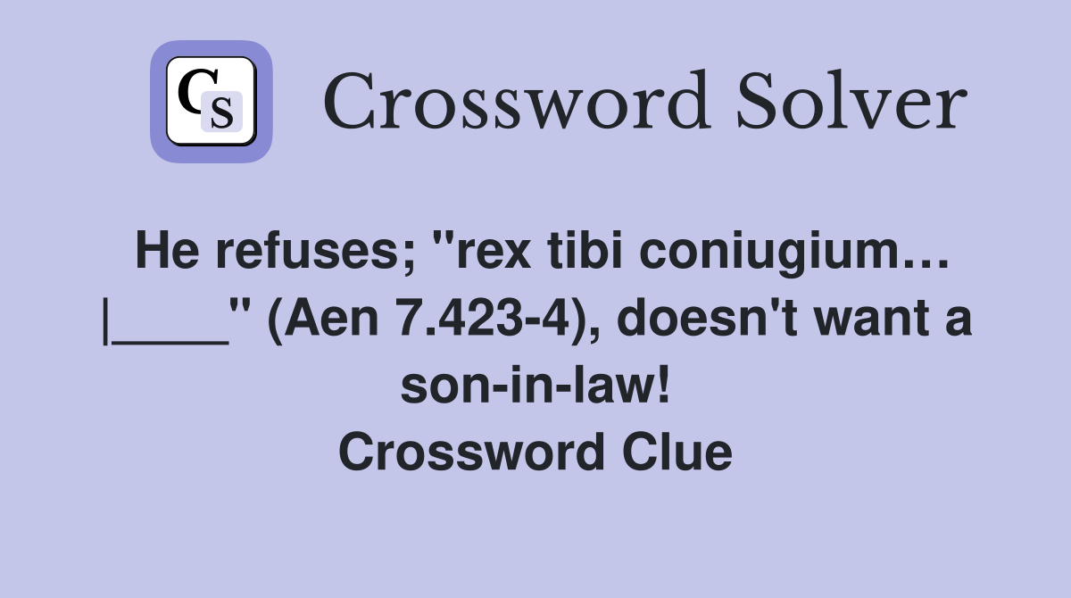 He refuses quot rex tibi coniugium quot (Aen 7 423 4) doesn #39 t want a