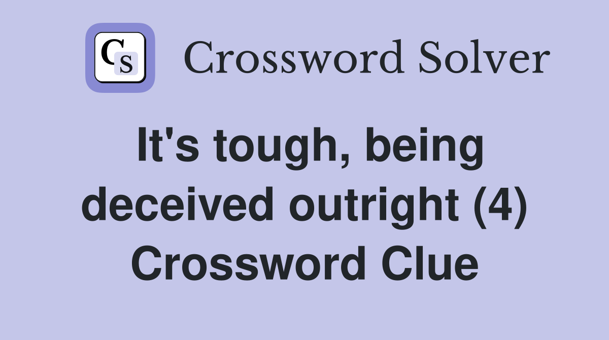 It #39 s tough being deceived outright (4) Crossword Clue Answers