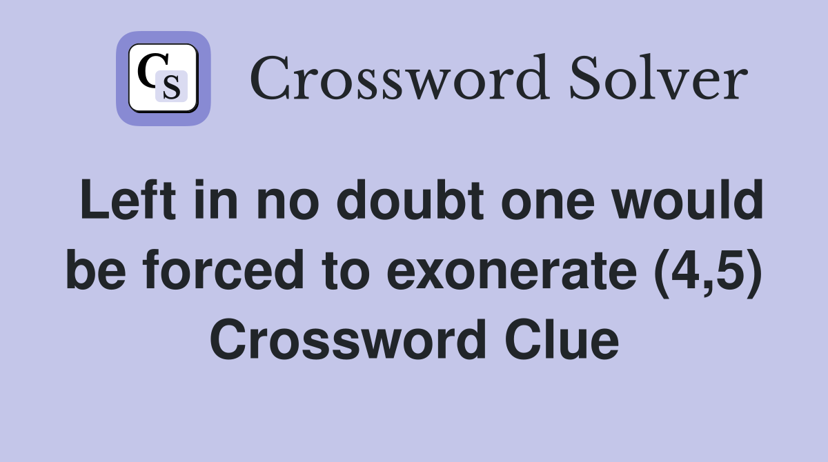 Left in no doubt one would be forced to exonerate (4 5) Crossword