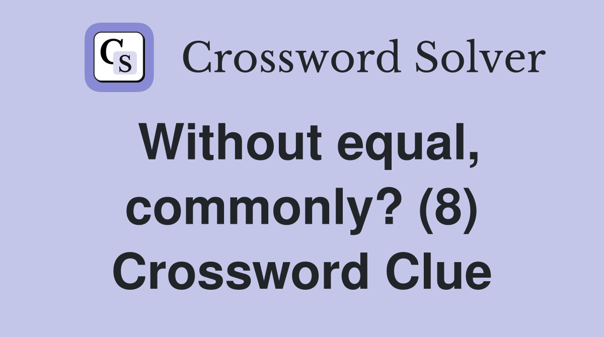 Without equal commonly? (8) Crossword Clue Answers Crossword Solver