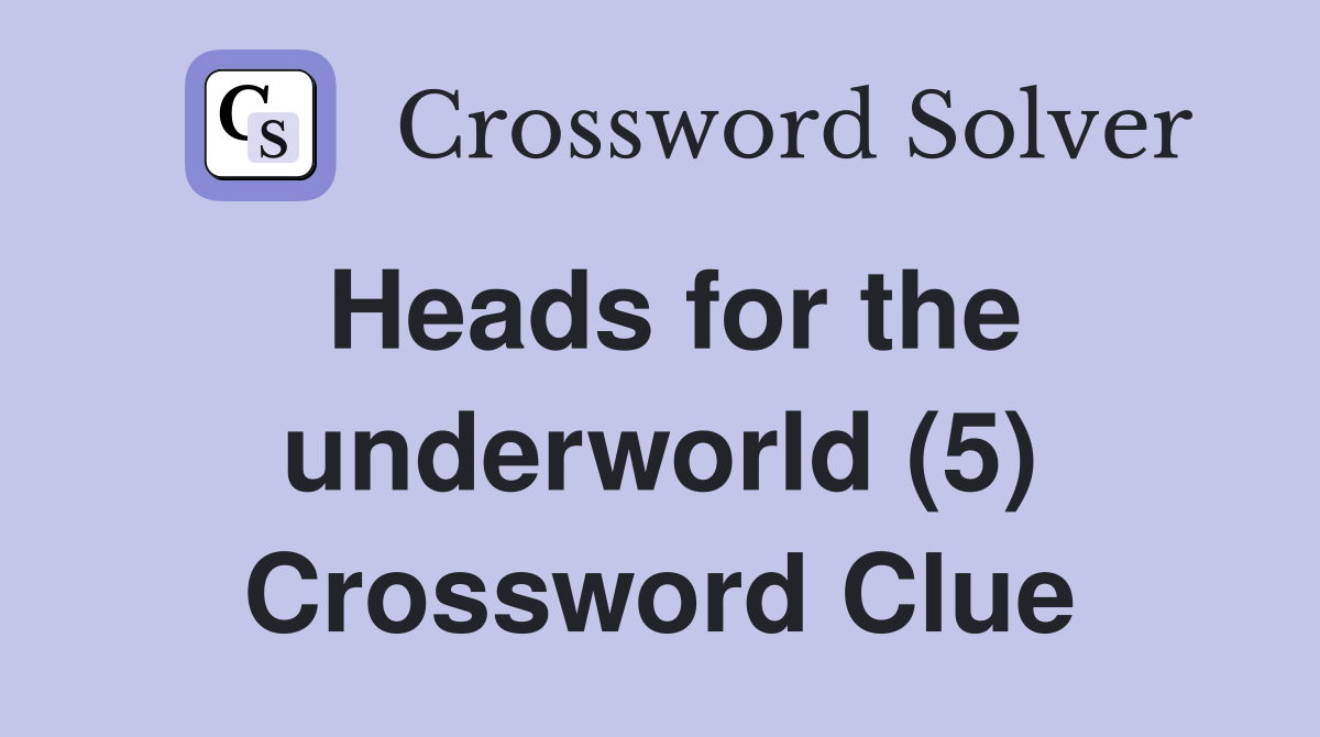 Heads for the underworld (5) Crossword Clue Answers Crossword Solver