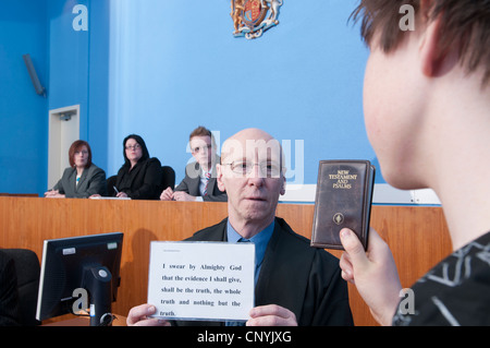 A witness swearing the Oath in a magistrates court Stock Photo Alamy
