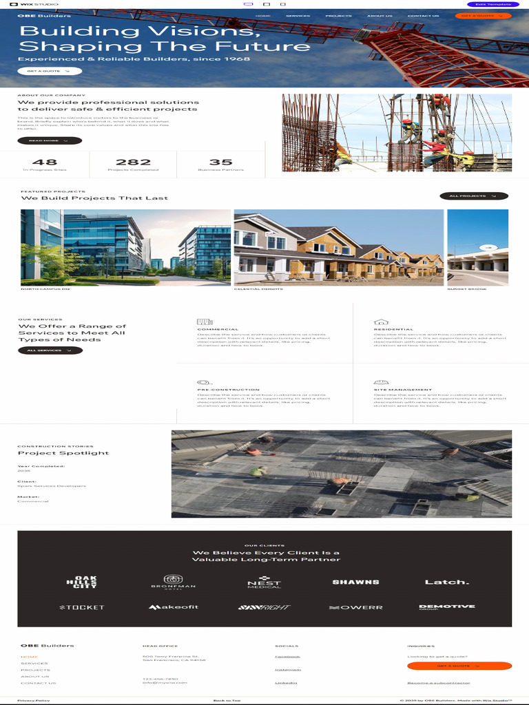 Construction Company Responsive Template Wix Studio PDF
