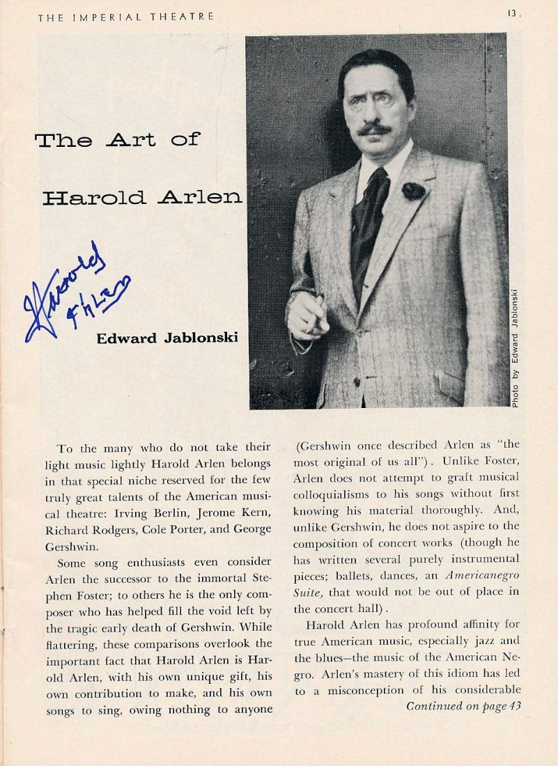 Harold Arlen Signed Playbill quot jamaica quot (famed Composer quot wizard Of Oz quot )