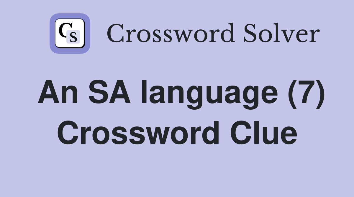 An SA language (7) Crossword Clue Answers Crossword Solver