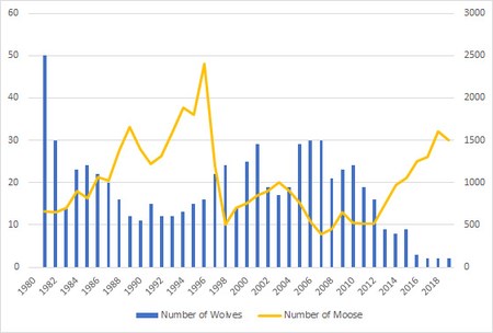 On aisle Royale wolves are the main predators of moose The graph