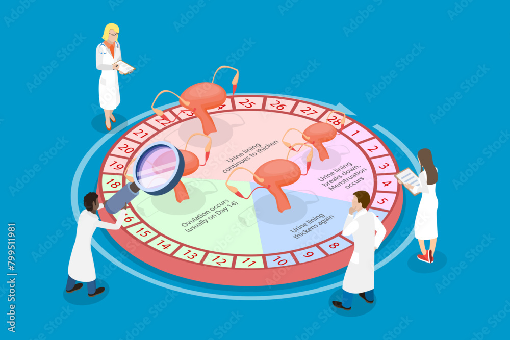 3D Isometric Flat Vector Illustration of Womens Fertility Cycle