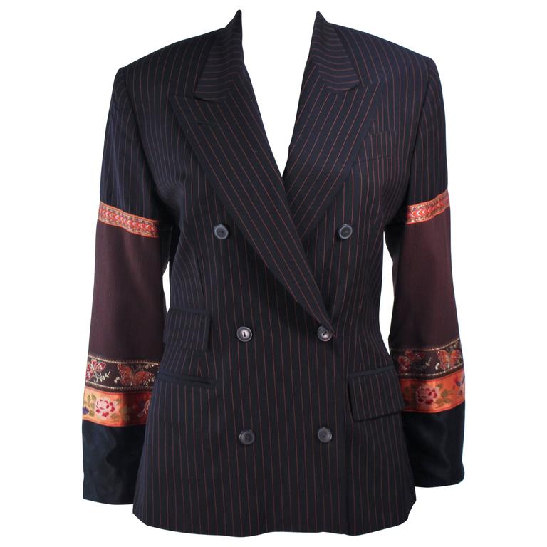 JEAN PAUL GAULTIER FEMME Pinstripe Jacket with Silk Applique Size 44 at