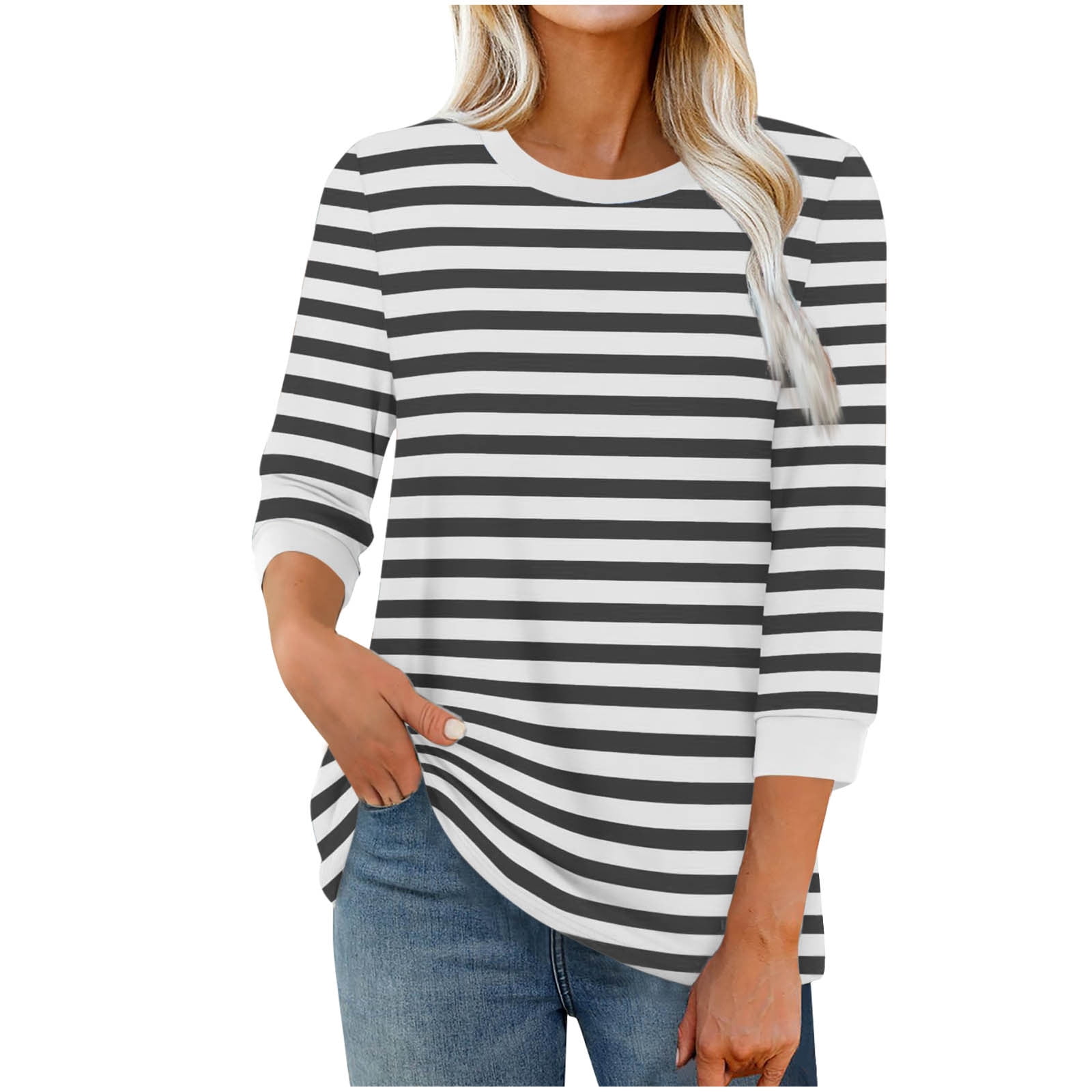 UYISJ Three Quarters Length Sleeve Womens Tops Dressy Crew Neck Boho