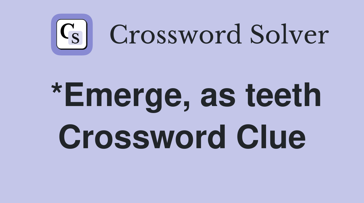 *Emerge as teeth Crossword Clue Answers Crossword Solver