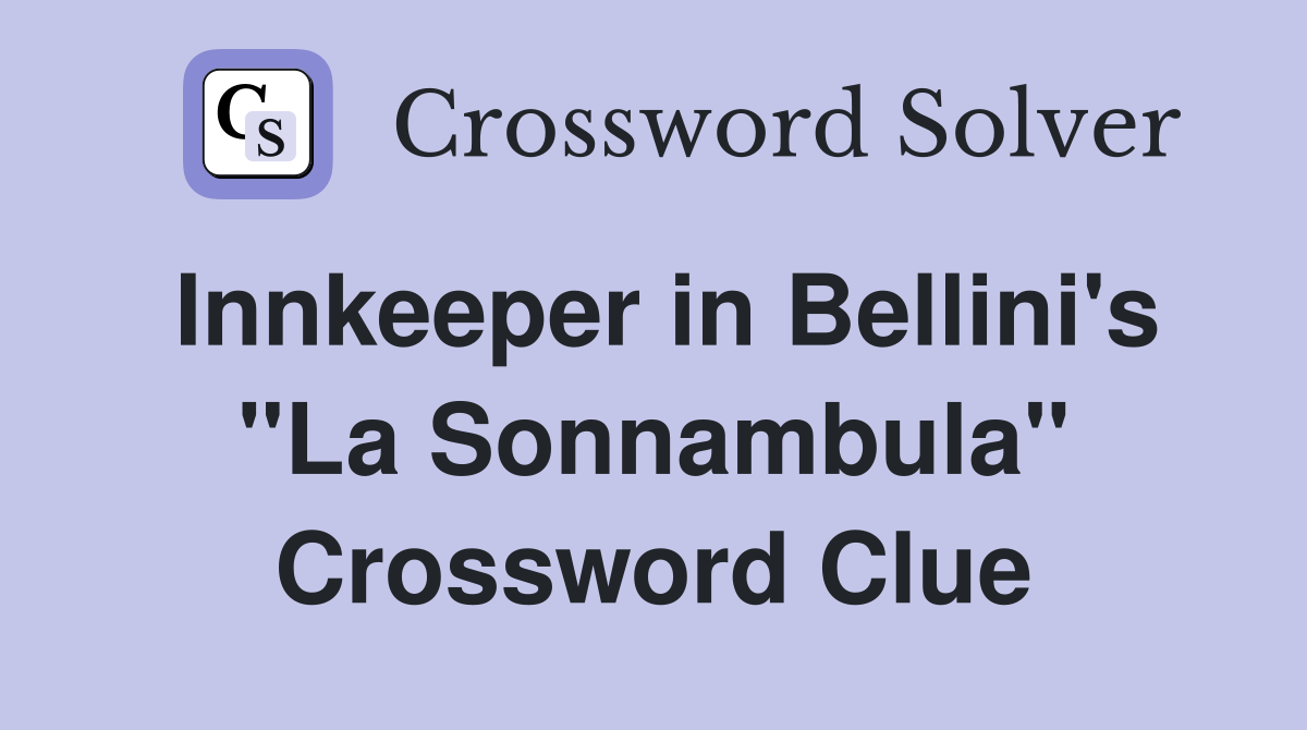 Innkeeper in Bellini #39 s quot La Sonnambula quot Crossword Clue Answers
