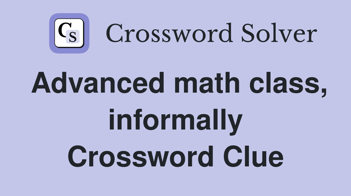Advanced math class informally Crossword Clue Answers Crossword Solver