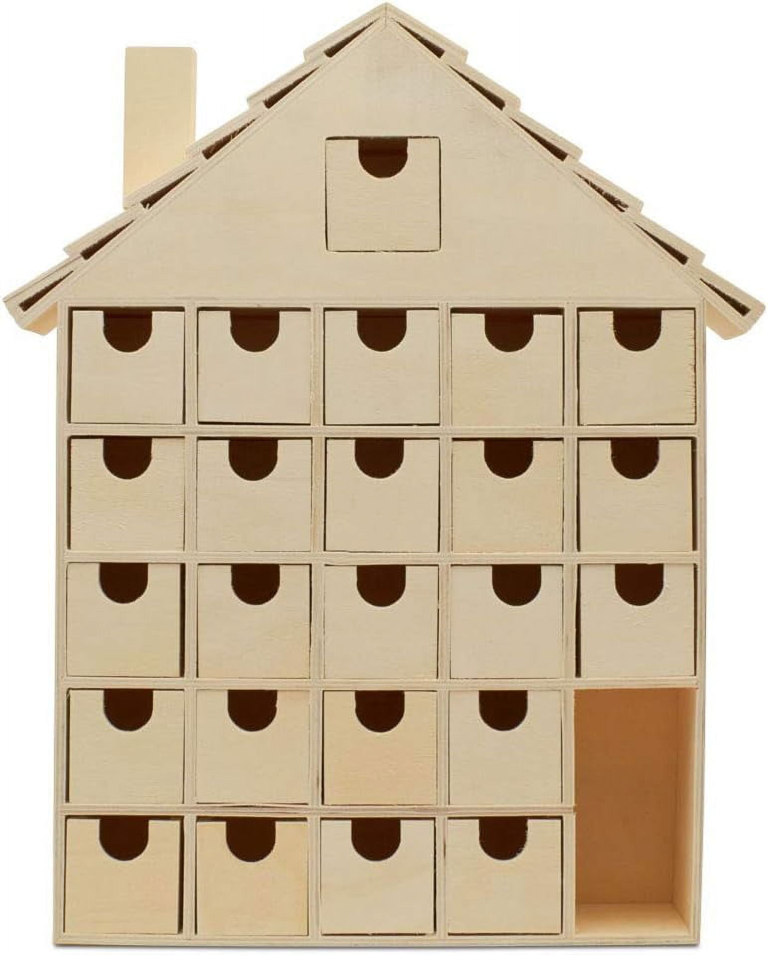 Christmas Wooden Advent Calendar with Drawers Unfinished Wooden House