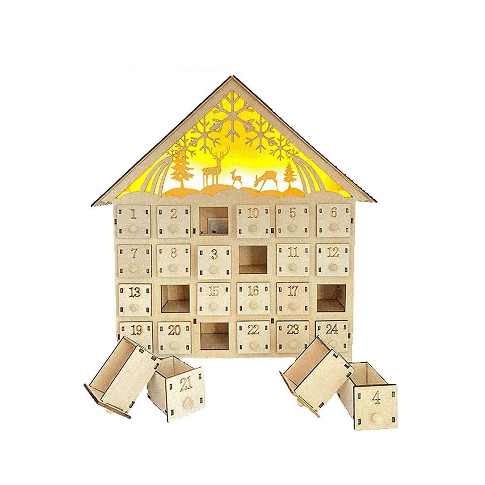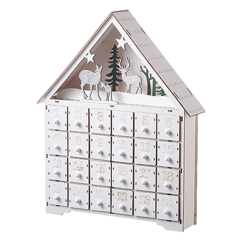 XUYAN Clearance Wooden Advent Calendar with Drawers Lights Up DIY