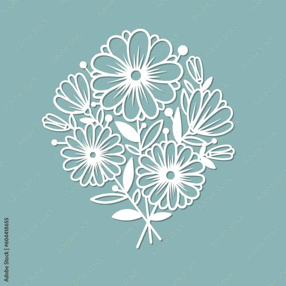 Bouquet of flowers Template for laser cutting of paper cardboard