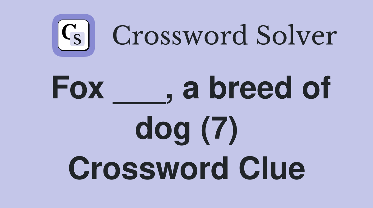 Fox a breed of dog (7) Crossword Clue Answers Crossword Solver