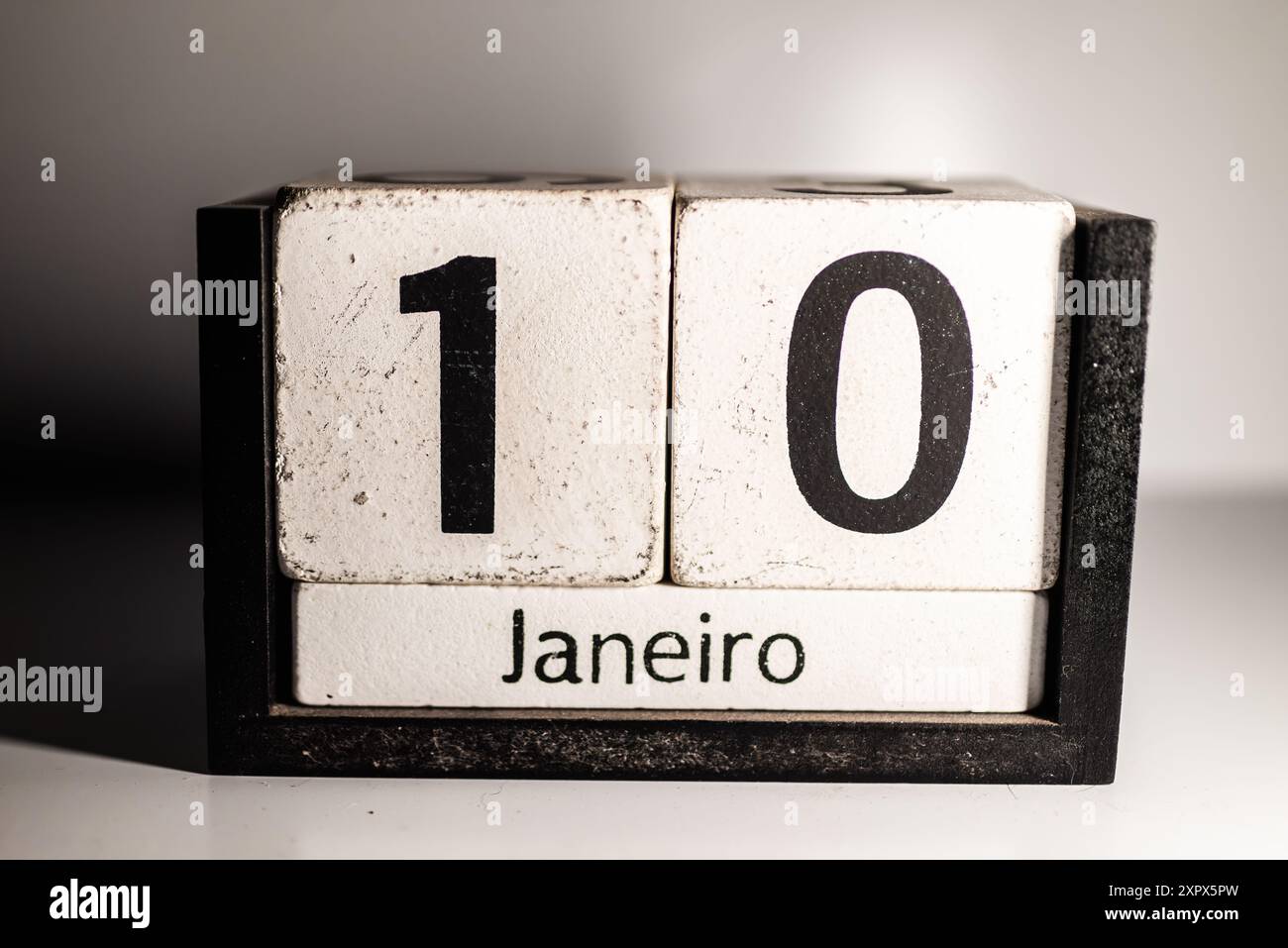 A close up of a wooden calendar block showing January 10 Stock Photo