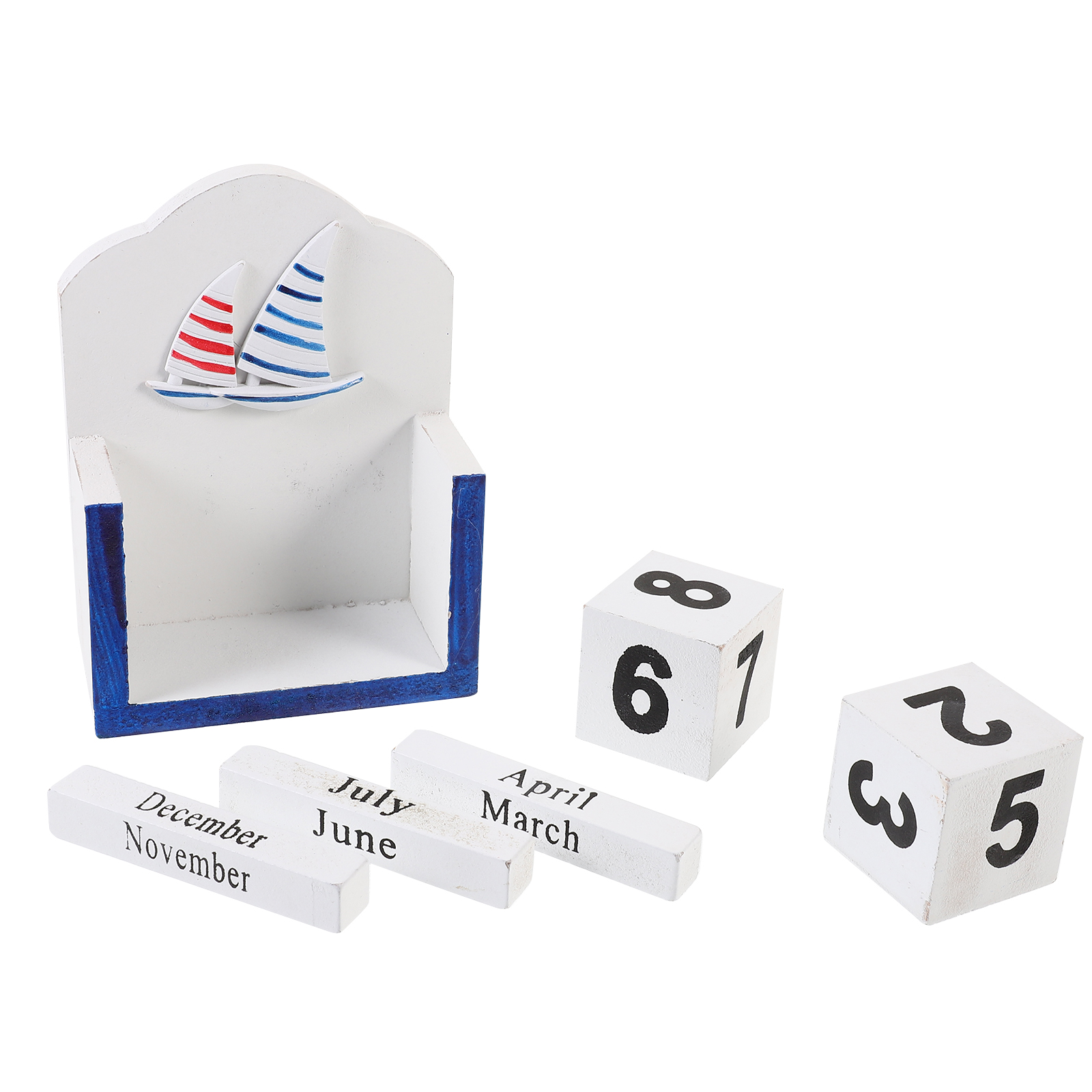 Wooden Perpetual Block Calendar for Desk Month Date Display Blocks for