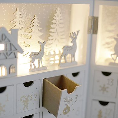 PE Wooden Christmas Advent Calendar Book with LED lit Winter Forest