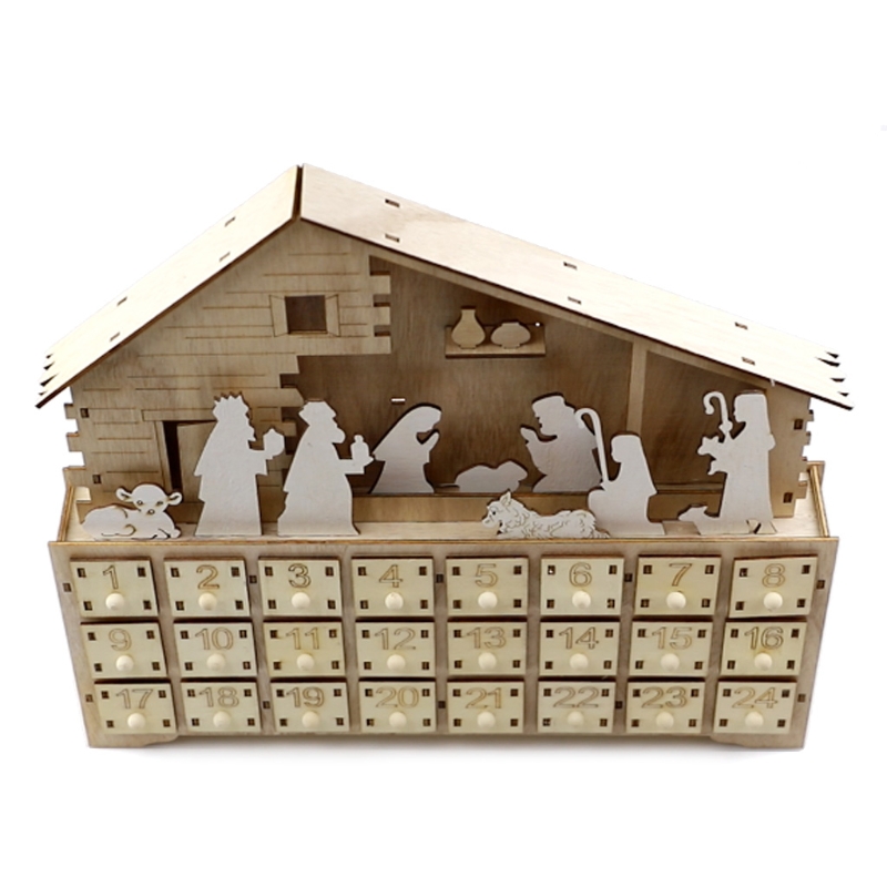 F2TE Nativity Scene Wooden Advent Calendar LED Lig Grandado