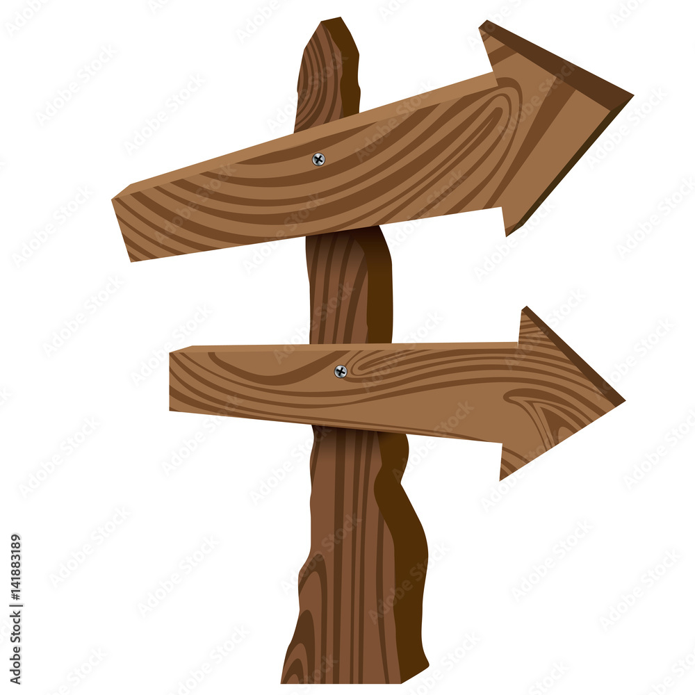 Free poste indicador de madera en blanco con carteles opuestos aislados