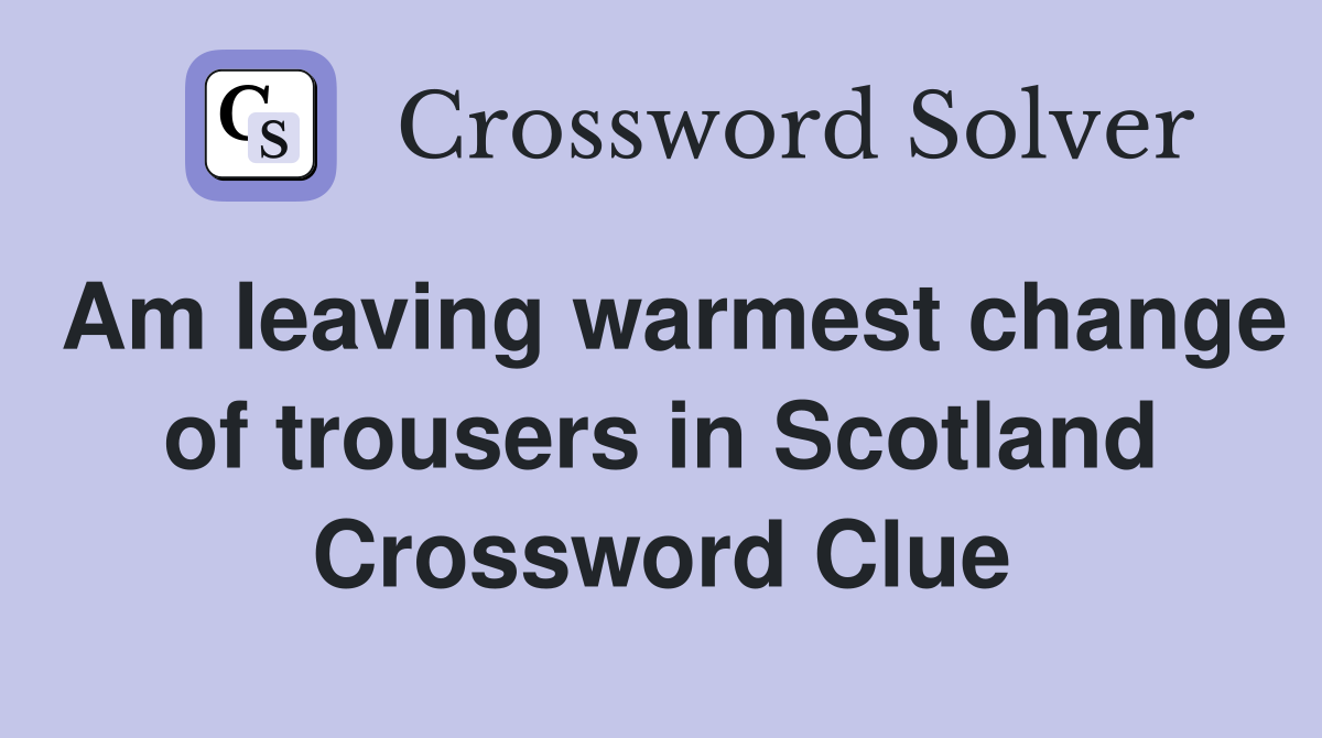 Am leaving warmest change of trousers in Scotland Crossword Clue