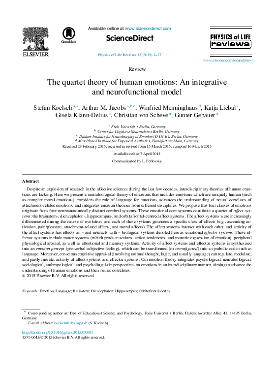 (PDF) The quartet theory of human emotions: An integrative and