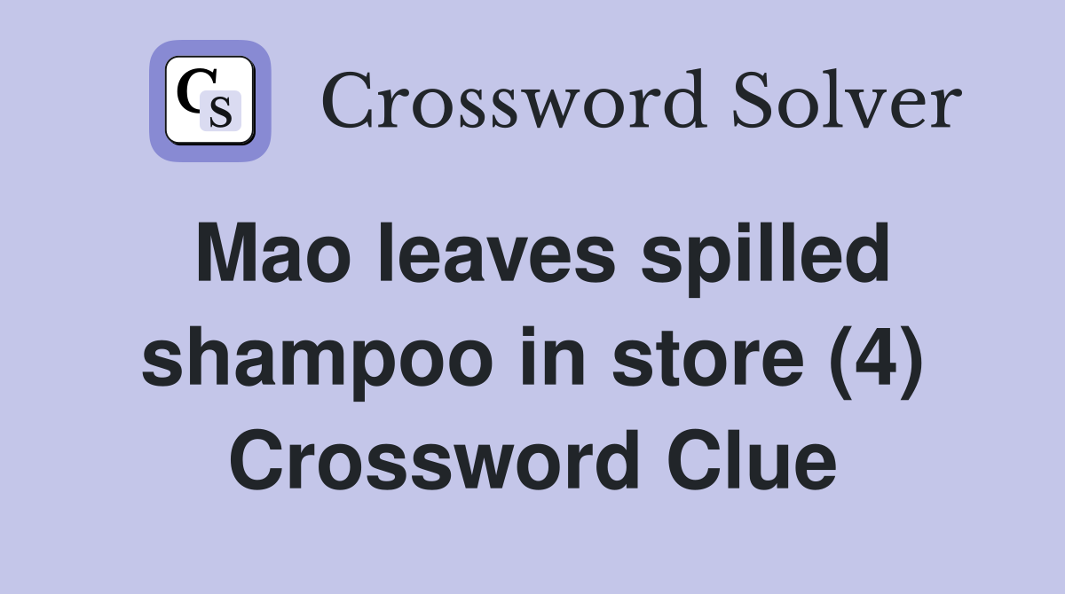 Mao leaves spilled shampoo in store (4) Crossword Clue Answers