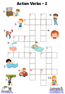 Action Crossword worksheet Action verbs worksheet Verbs for kids
