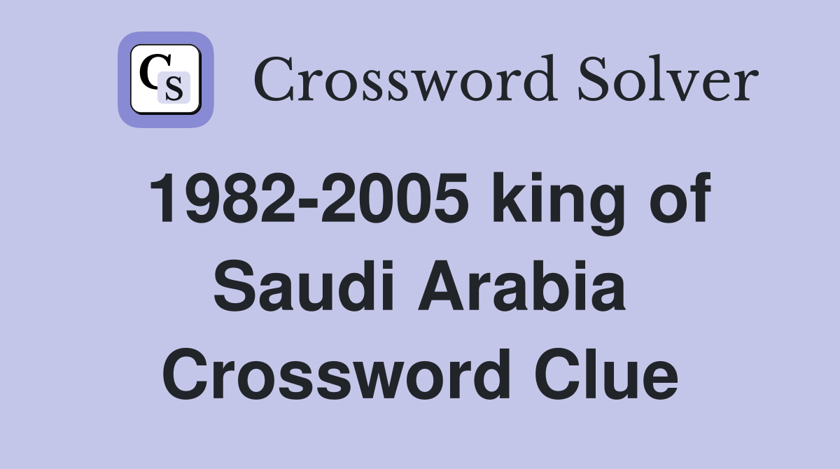 1982 2005 king of Saudi Arabia Crossword Clue Answers Crossword Solver