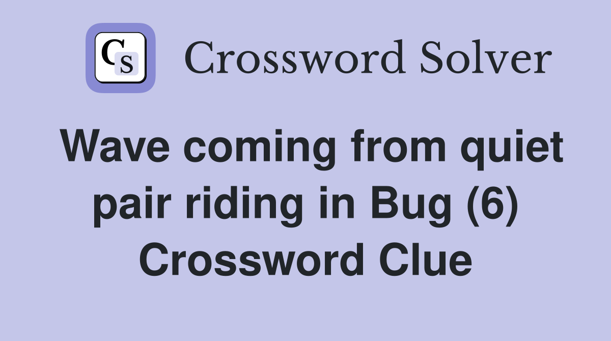 Wave coming from quiet pair riding in Bug (6) Crossword Clue Answers