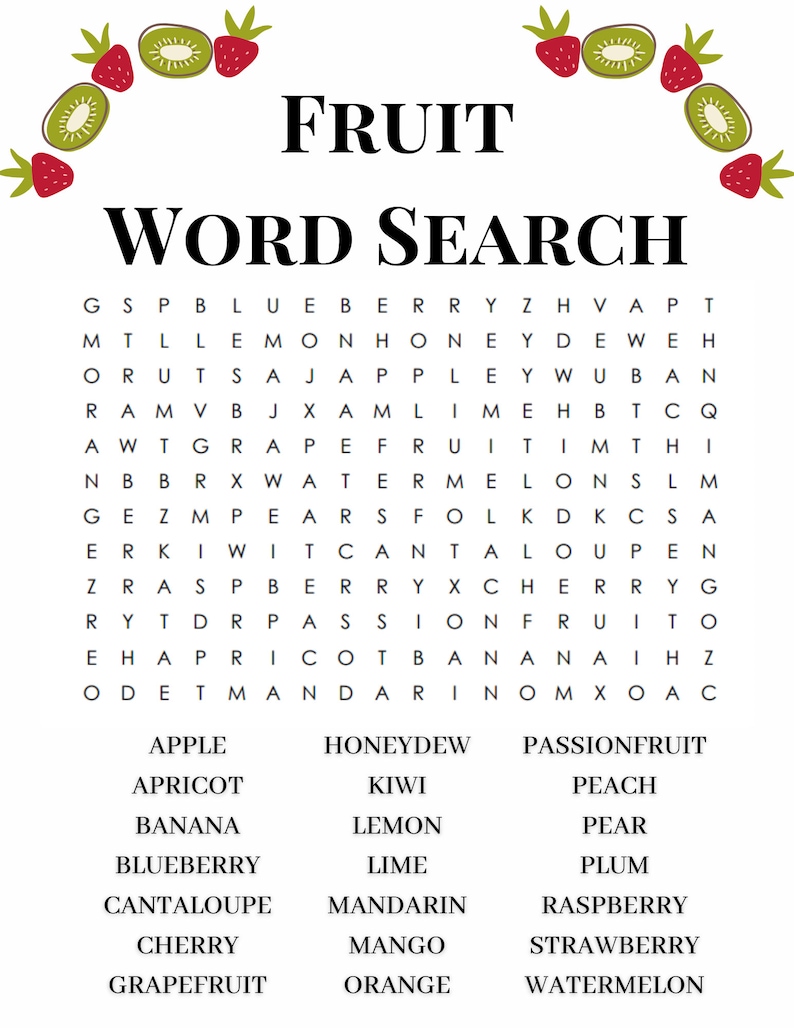 Fruit Word Search Etsy