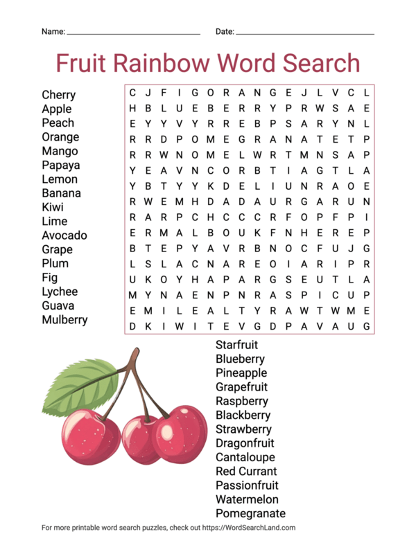 Printable Fruit Word Search Puzzles (PDF PNG) Word Search Land
