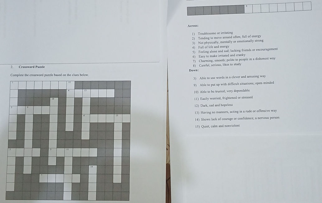 2 Crossword Puzzle Complete the crossword StudyX