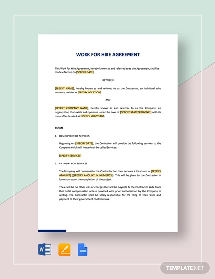 Work for Hire Agreement Template in Word Pages Google Docs Download