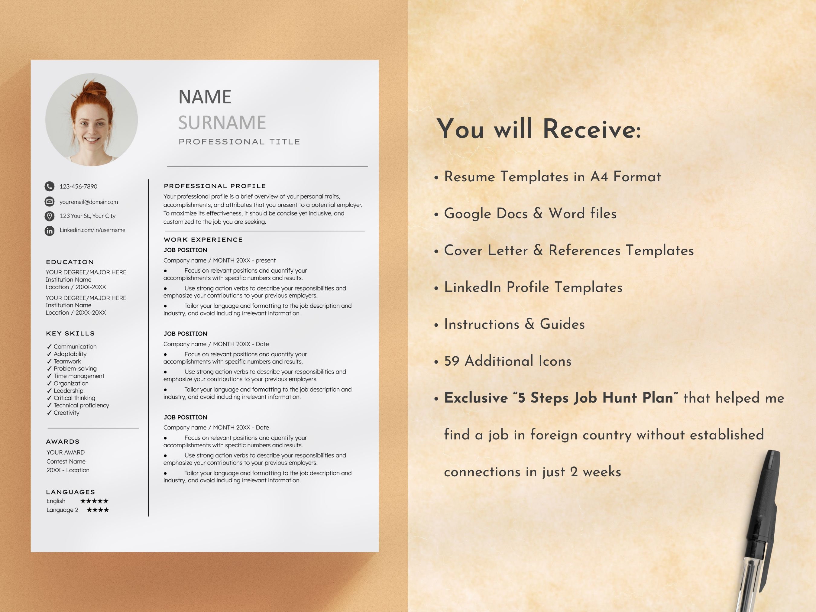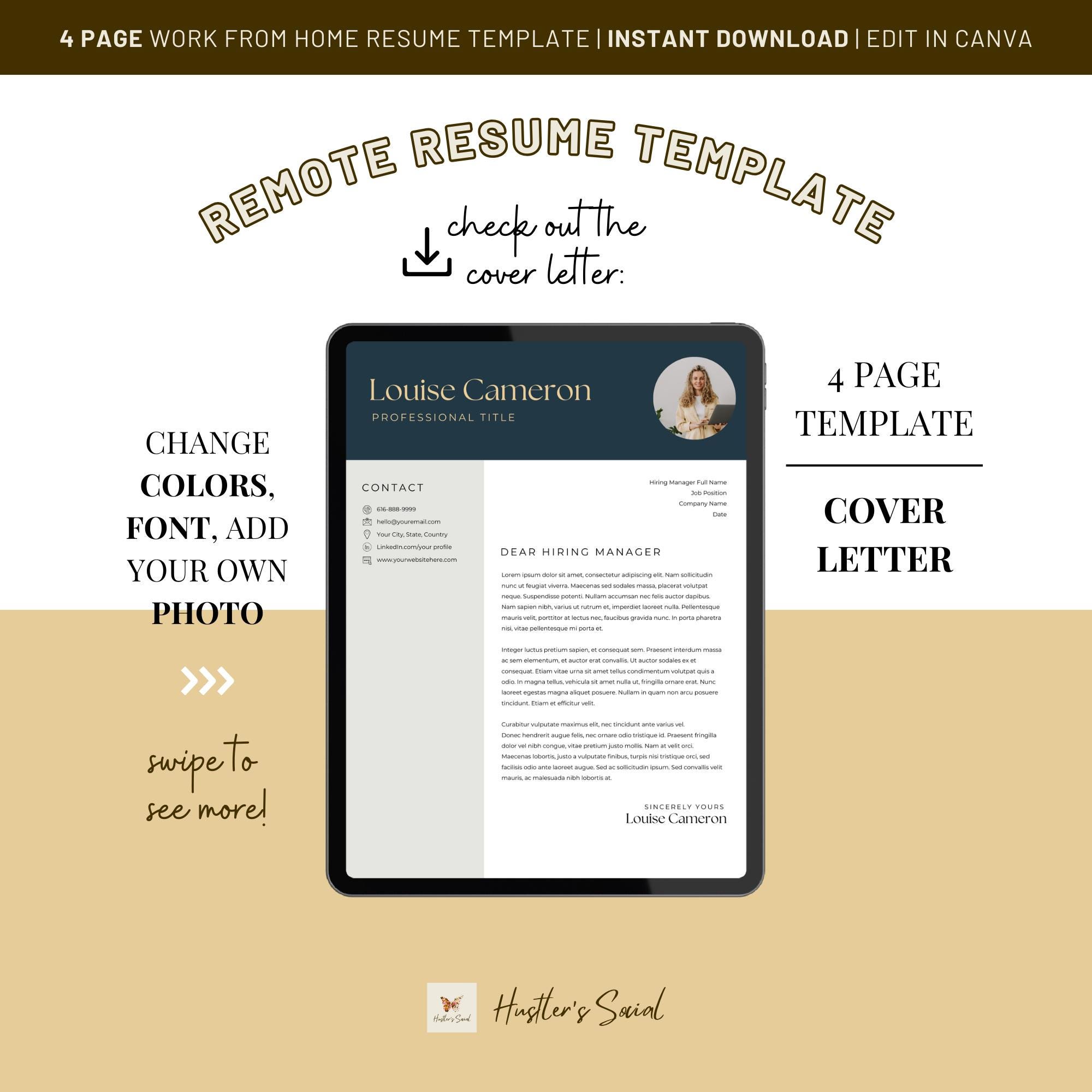 4 page Work From Home Resume Template Canva Editable Cover Letter
