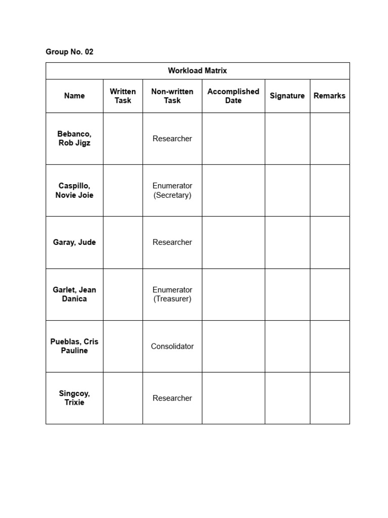 Workload Matrix Template prntbl concejomunicipaldechinu gov co