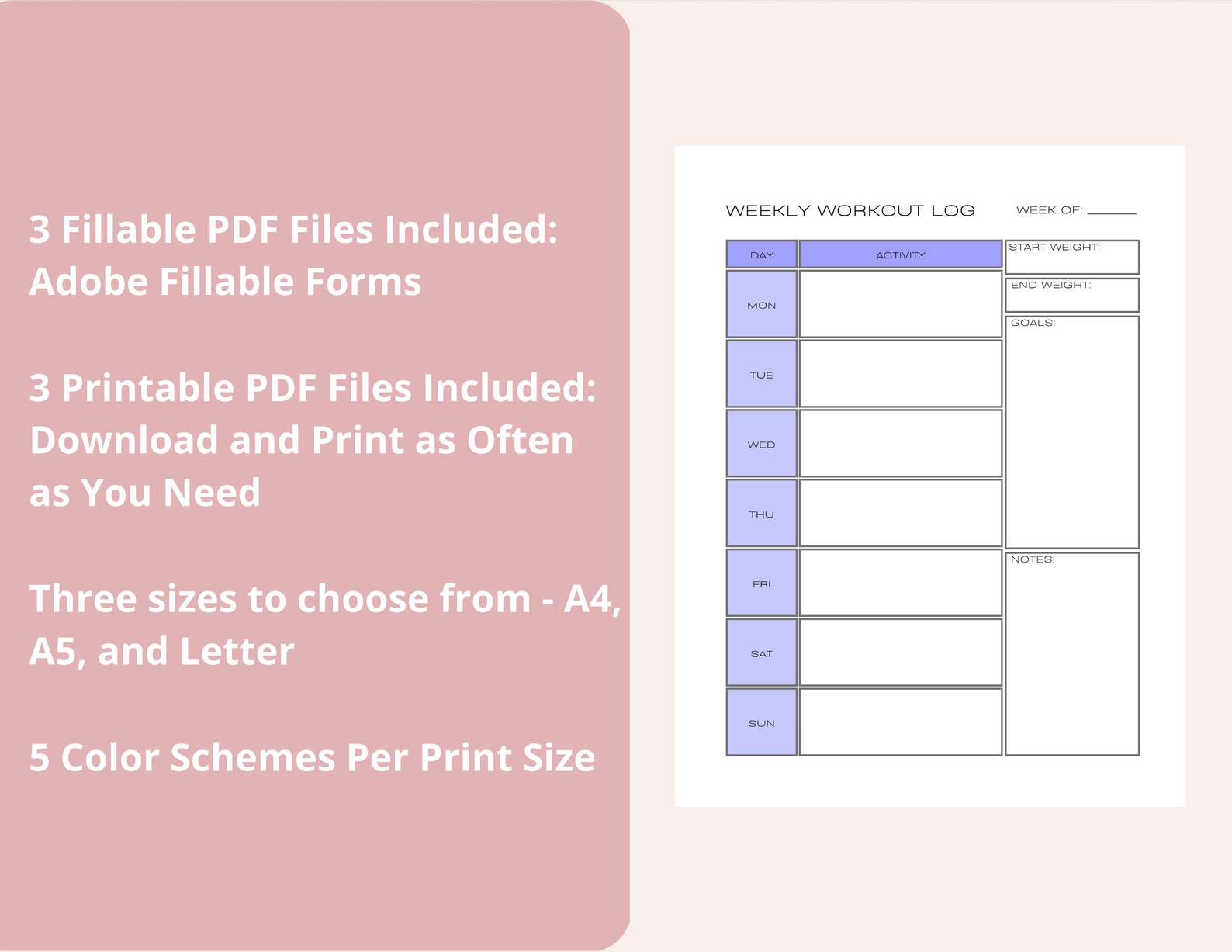 Weekly Workout Planner Printable PDF Fillable/use as a Printable or